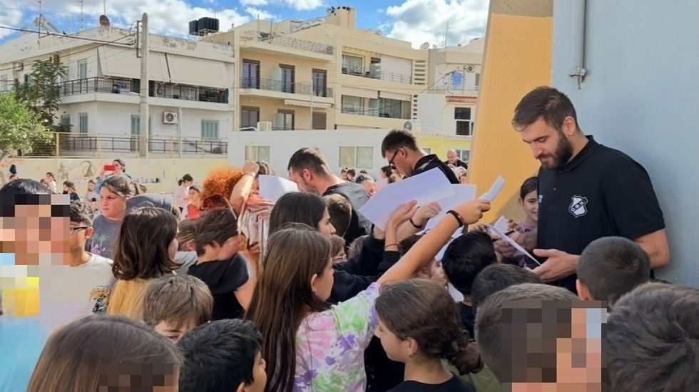 Στο πλαίσιο των κοινωνικών δράσεων η ανδρική ομάδα μπάσκετ του ΟΦΗ επισκέφθηκε σήμερα το 24ο και 31ο Δημοτικό Σχολείο Ηρακλείου, σκορπίζοντας χαμόγελα και θετική ενέργεια στους μαθητές.