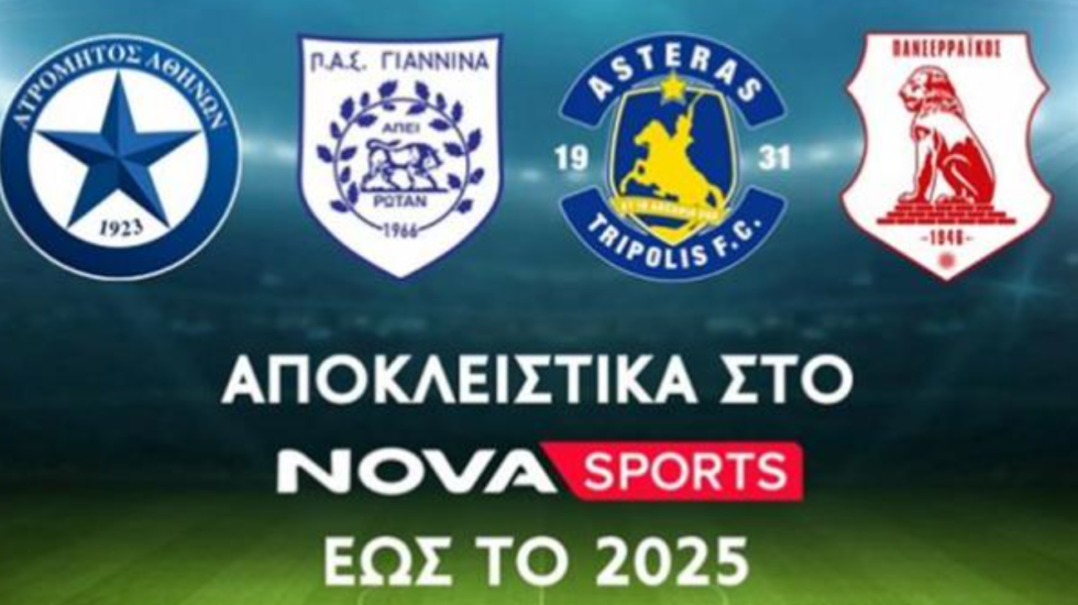 Στη Nova θα «παίζουν μπάλα» μέχρι το 2025 οι Ατρόμητος, ΠΑΣ Γιάννινα, Αστέρας Τρίπολης και Πανσερραϊκός, όπως ανακοίνωσε το συνδρομητικό κανάλι.