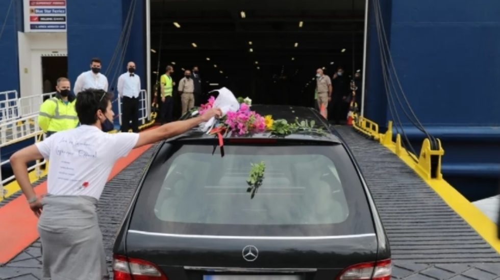 Εκατοντάδες πολίτες βρέθηκαν στην πύλη Ε2 στο λιμάνι του Πειραιά προκειμένου να αποχαιρετήσουν τον μεγάλο μουσικοσυνθέτη