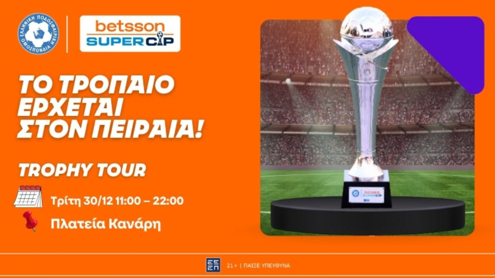 Η πρώτη στάση του Trophy Tour θα πραγματοποιηθεί στον Πειραιά, την Τρίτη 30 Δεκεμβρίου, από τις 11:00 έως τις 22:00, μέσα από ένα ειδικά διαμορφωμένο Betsson Fan Zone, αφιερωμένο στο Betsson Super Cup.